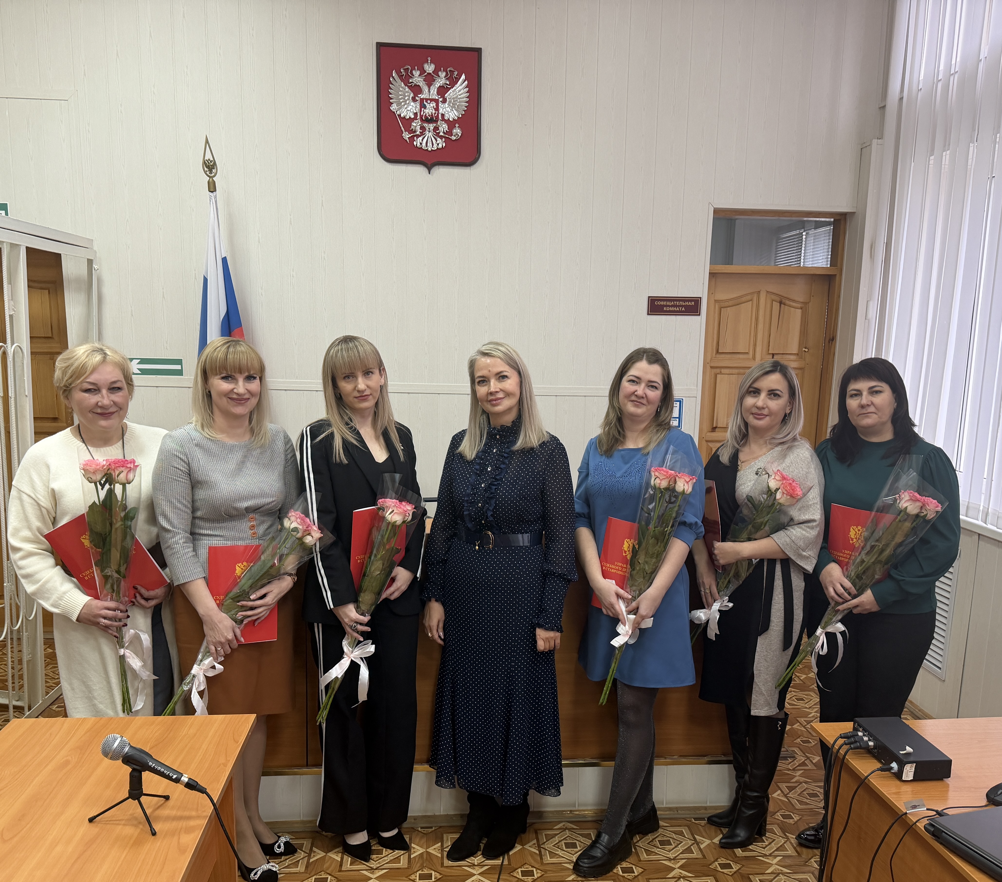29.12.2025 года на совещании в Труновском районном суде в торжественной обстановке председателем суда Евлашовой Ириной Сергеевной награждены Грамотами Управления Судебного департамента в Ставропольском крае за образцовое исполнение должностных обязанностей, личный вклад в развитие Управления и судебной системы Ставропольского края государственные гражданские служащие Труновского районного суда: Валуева Инна Ивановна - ведущей специалист, Короленко Марина Васильевна - помощник судьи, Луценко Ольга Николаевна - помощник судьи, Шаманова Ольга Владимировна - секретарь судебного заседания, объявлены Благодарности Управления Судебного департамента в Ставропольском крае за успешное и добросовестное исполнение должностных обязанностей, Ламановой Александре Викторовне - секретарю судебного заседания, Рихтер Елене Владимировне - специалисту Труновского районного суда Ставропольского края.